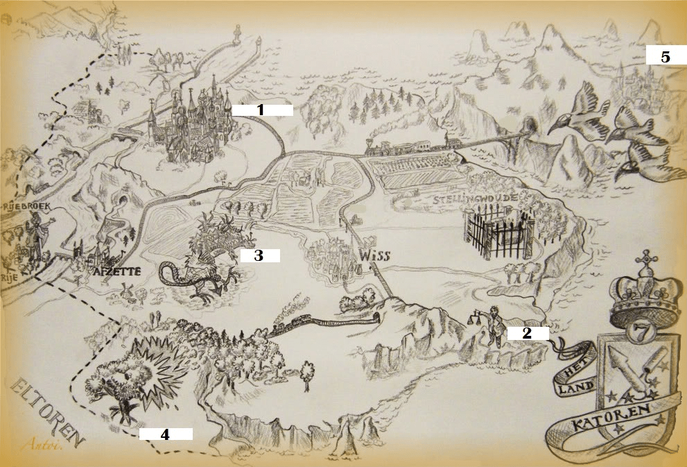 04) Identifique no mapa as localidades numeradas onde se passam as aventuras de Stach em sua jornada para ser rei.