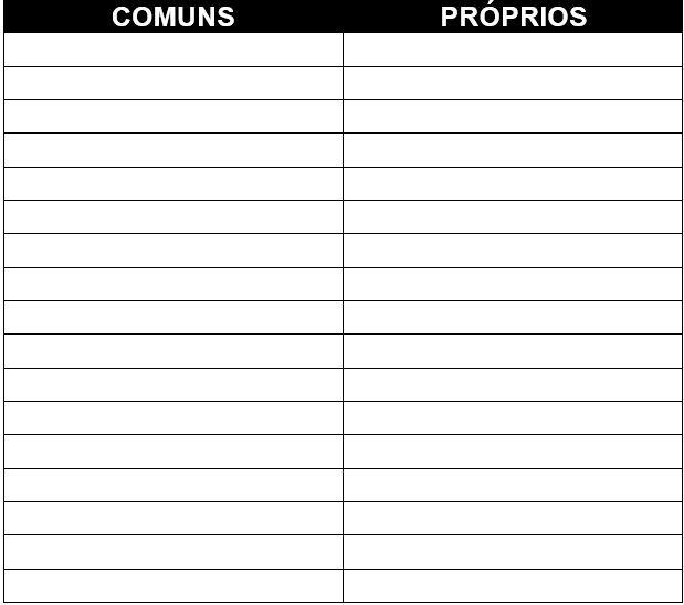 01) Separe, das frases abaixo, os substantivos próprios e os comuns, escrevendo-os no quadro.