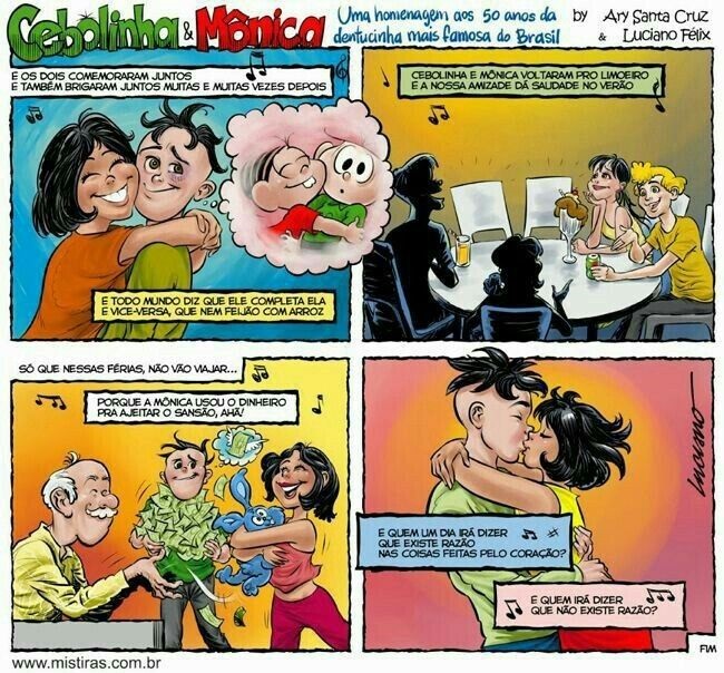 Agora leia uma história em quadrinhos que presta, também, uma homenagem à famosa música de Renato Russo, “Eduardo e Mônica”, para responder às próximas questões.